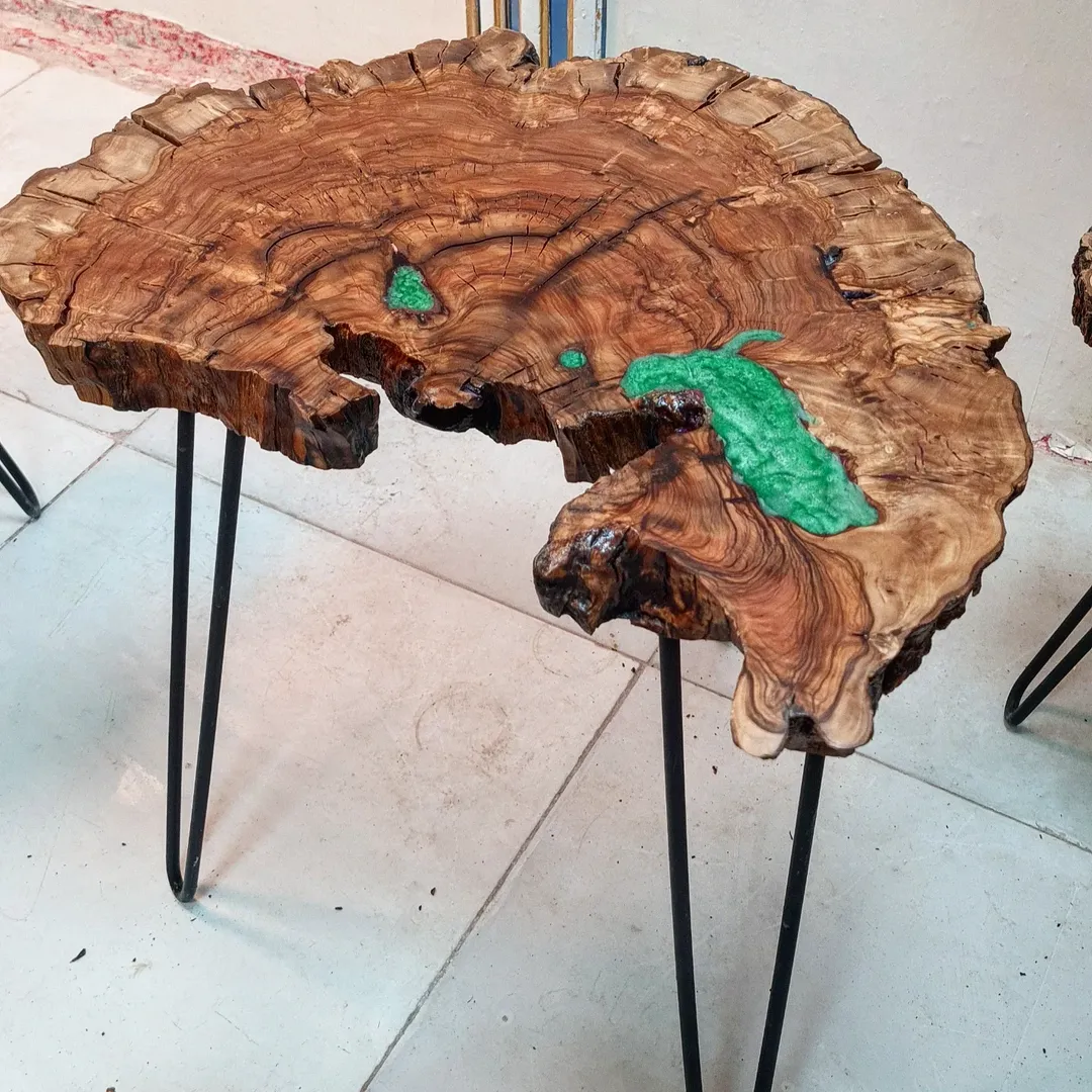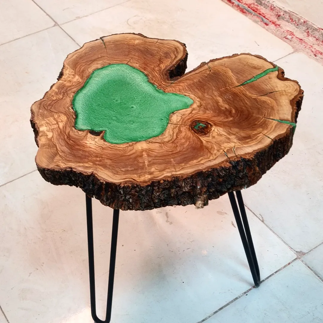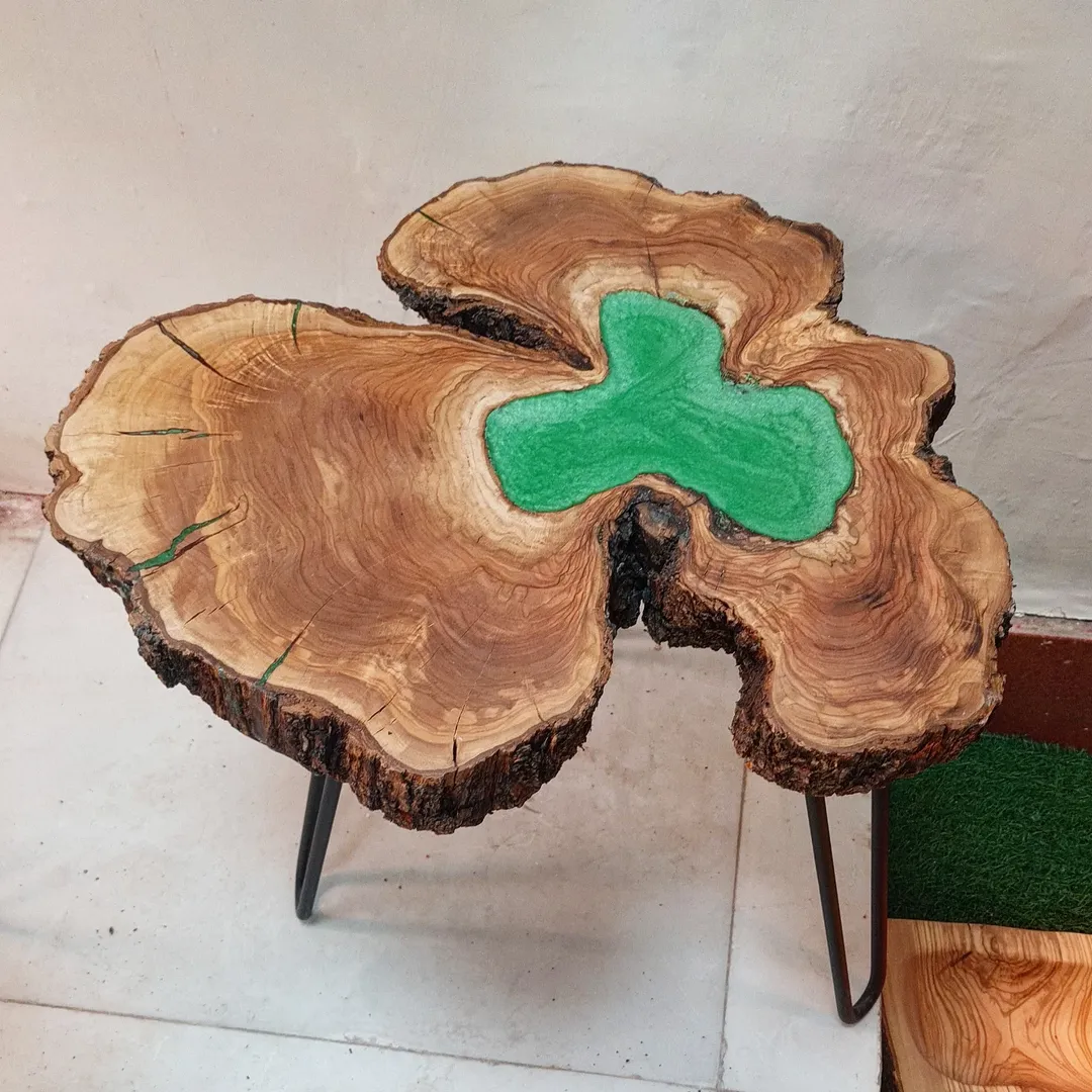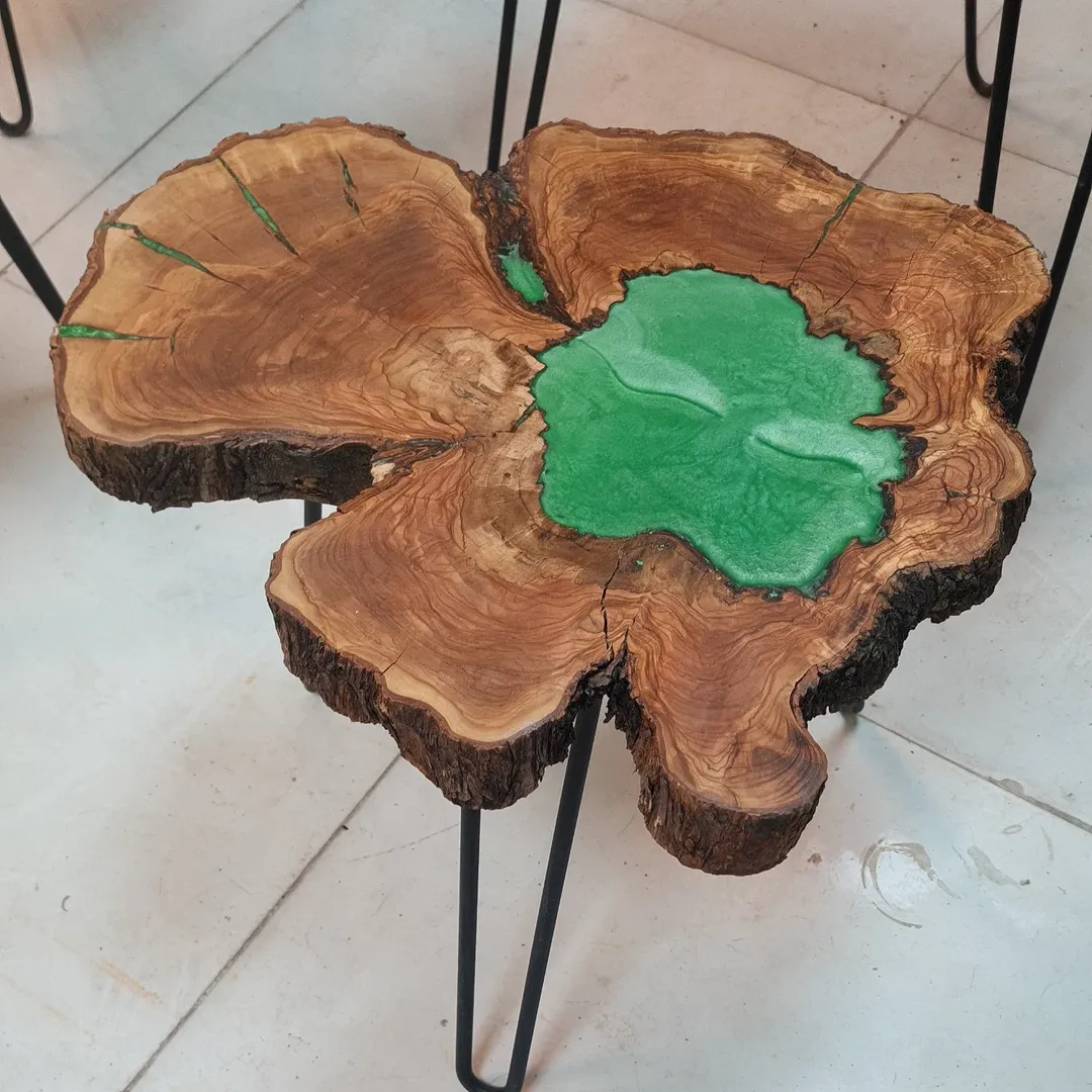 ست چهار تیکه میز عسلی چوب زیبای زیتون و رزین پایه سنجاقی